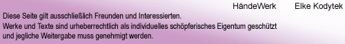 Viele Skulpturen entstanden in verschiedenen Situationen zu unterschiedlichen Themen, nach Assoziationen zu Sprüchen, Versen, Texten und Liedern, bei Verarbeitung nach schweren Stunden und aus Freude am Formen mit dem Werkstoff "Ton".